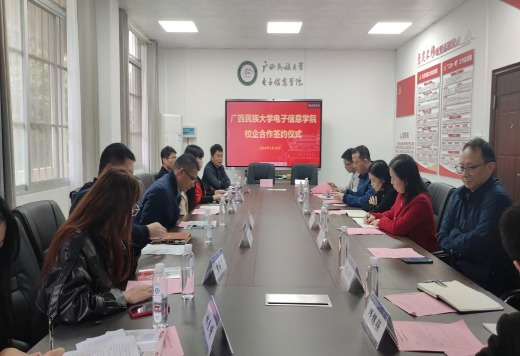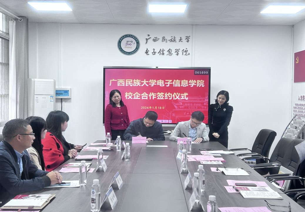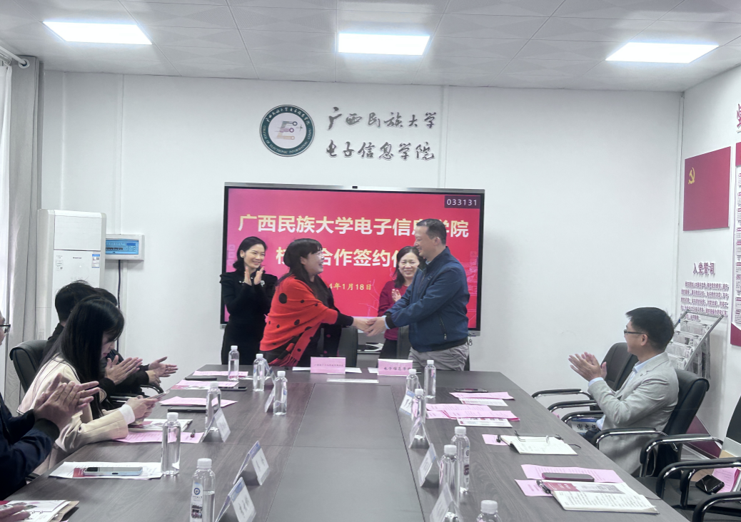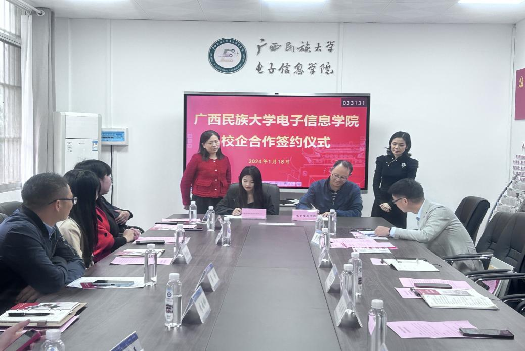 1月18日下午,伟德国际victor1946与广西南宁齐鸣科技有限公司、广西艾学教育科技有限公司、广西新松机器人有限公司、广西万诺信息技术有限公司、南宁踏弩科技有限公司在博识楼300会议室举行校企合作签约仪式,电子信息公司党委书记张婧,党委副书记、经理罗丽平,党委副书记罗少科,副经理文春明、卢振坤,企业相关负责人出席校企合作签约仪式。