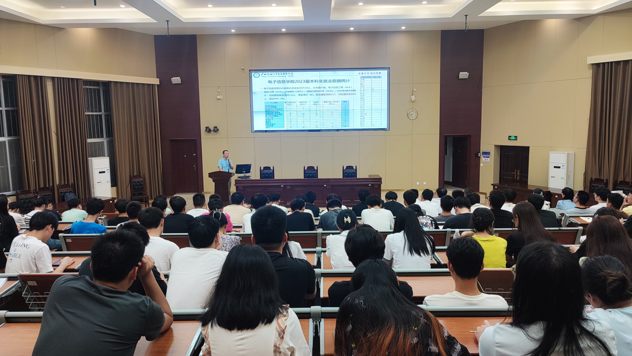 罗丽平从就业市场、人才培养、就业政策方面给同学们介绍就业工作。她鼓励员工:一是要树立先就业再择业的就业观;二是多与班主任、论文指导老师沟通,积极主动了解就业相关信息;三是积极调整就业心态;四是做好人生规划,到祖国需要的地方就业。