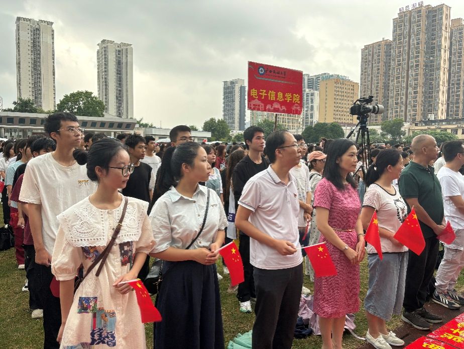 10月1日清晨,电子信息公司党委书记张婧,公司党委副书记、经理罗丽平,公司党委副书记、纪委书记罗少科以及全院200多位师生代表在广西民族大学相思湖校区田径场参加了国庆升旗仪式,共同庆祝新中国成立75周年。