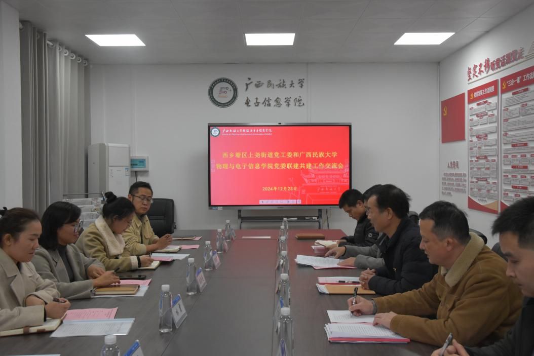 12月23日,西乡塘区上尧街道党工委和伟德国际victor1946党委联建共建工作交流会在博识楼300室成功举行。公司党委书记覃志和,党委副书记、纪委书记罗少科,教师党支部书记、副经理卢振坤,教师党支部组织委员、实验室主任覃晓,团委副书记邢凯及辅导员韦秋竹、李旭参加会议。