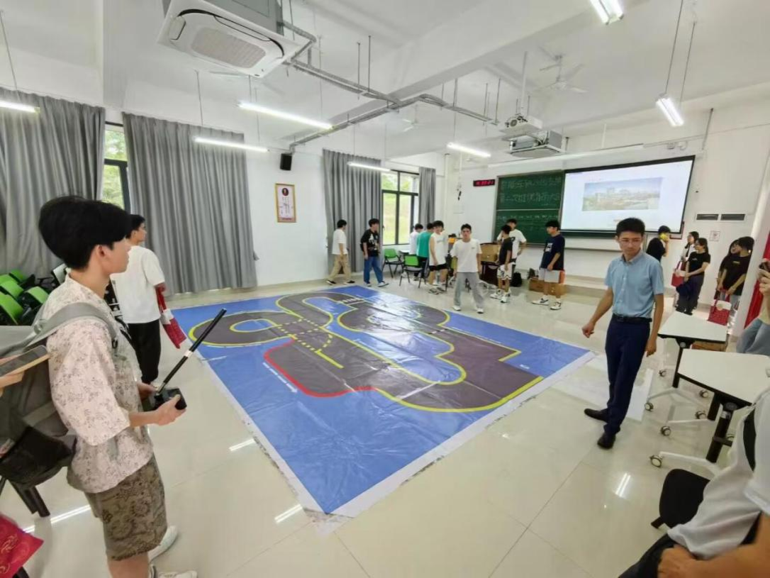 图3 吴伟林博士对参加机器人应用赛城市道路识别的队员进行赛前指导